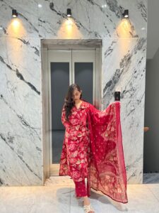 Step into effortless elegance with this beautifully crafted red floral printed kurta set. Designed for comfort and style, this outfit features a soft, breathable fabric that keeps you feeling fresh all day long. The delicate floral patterns add a touch of femininity, while the straight silhouette ensures a flattering fit for every body type.